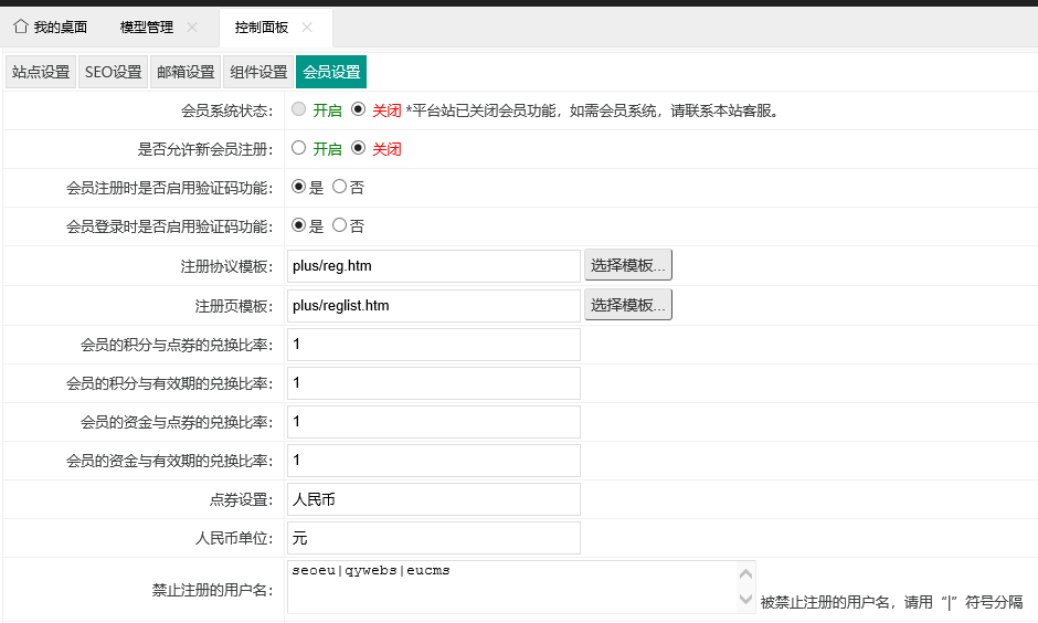 EUCMS有着强大的会员功能和强大的会员阅读收费机制,要使用此功能首先要到相应的模型打开此功能,模型管理——设置,如下图: